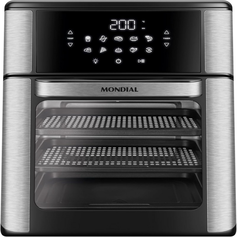 2 EM 1 - AIR FRYER + FORNO: A família de Air Fryers Mondial continua crescendo! O modelo OVEN une as vantagens da tecnologia da Air Fryer ao espaço e versatilidade do forno. Você pode assar, cozinhar e fritar sem óleo e com perfeição.
