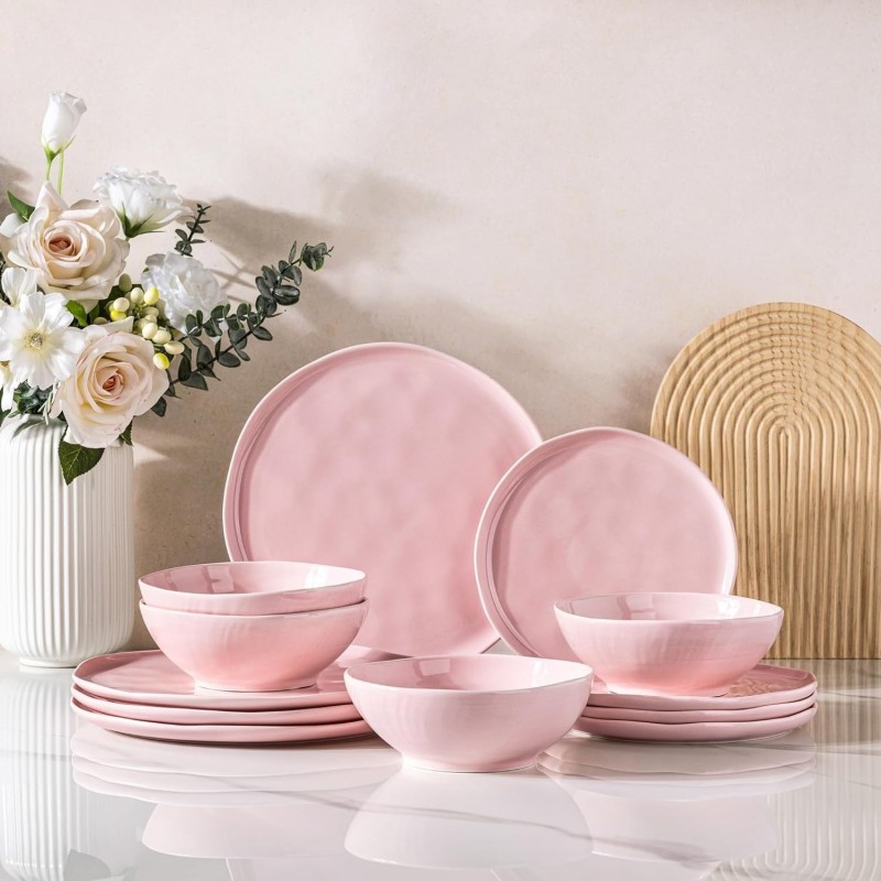 【Conteúdo da embalagem】Este conjunto de louças de 12 peças inclui 4 pratos de jantar de 26,6 cm, 4 pratos de salada de 21 cm e 4 tigelas de cereal de 710 ml. Ideal para famílias pequenas, casais ou solteiros, este conjunto atende perfeitamente a todas as suas necessidades de jantar com quatro jogos de mesa completos.