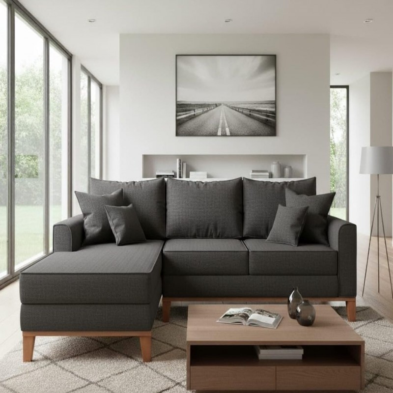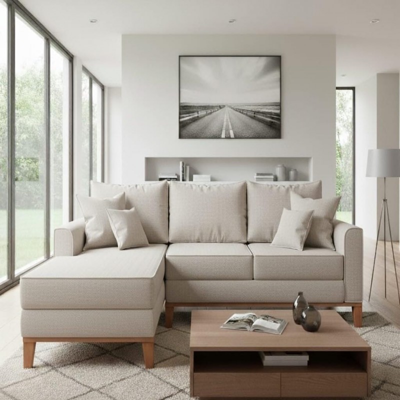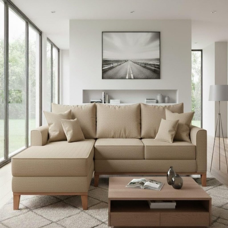 O Sofá Beny com Chaise é uma peça elegante e confortável, ideal para complementar a decoração com sofisticação. Possui estrutura em madeira de eucalipto de reflorestamento, garantindo resistência e durabilidade. Conta com percintas elásticas e espumas de alta qualidade, oferecendo ótimo suporte e conforto. Seu design moderno valoriza qualquer ambiente. O revestimento em linho oferece um toque suave e moderno, enquanto as almofadas preenchidas com fibra siliconada garantem uma experiência aconchegante. Características do Produto: - Estrutura: Madeira de eucalipto (reflorestamento), ecologicamente correta e com controle de umidade. - Assentos: Percintas elásticas revestidas com espuma de poliuretano. - Almofadas: Preenchidas com fibra siliconada, proporcionando conforto e apoio. - Material do Revestimento: Linho, macio e elegante. - Base: Em madeira com acabamento em verniz poliuretano, proporcionando maior durabilidade e um toque sofisticado. - Acompanha 4 almofadas soltas. - Capacidade máxima de 300kg (distribuídos uniformemente). Dimensões: Sofá (3 Lugares): - Altura: 88cm - Profundidade: 1,43cm - Comprimento: 2,25m Observações Relevantes: - Todos os produtos são embalados com segurança para garantir a integridade durante o transporte. - As cores dos produtos podem variar dependendo da configuração de seu monitor. - A tonalidade do tecido pode variar a cada lote do fabricante. - As imagens são ilustrativas e objetos de decoração e eletros não estão incluídos. - Verifique as dimensões do produto para garantir que ele passará adequadamente por portas, escadas e elevadores. - Como se trata de estofado, pode haver variação nas medidas de até 3 cm. - Não oferecemos serviços de montagem, desmontagem ou instalação. A entrega não inclui subir escadas ou uso de equipamentos como guinchos. - A N Móveis fica responsável pelo transporte e entrega do produto até a portaria ou portão de entrada da sua residência. Após a conclusão da entrega no endereço solicitado, o transporte até o local de uso ficará sob responsabilidade do cliente, caso neste momento haja problemas ou danos no produto, ficará a cargo do mesmo. Obs: As transportadoras não sobem escadas/elevadores!!! Recomendações de uso e limpeza: Não utilizar produtos químicos, limpar apenas com pano levemente umedecido com água.