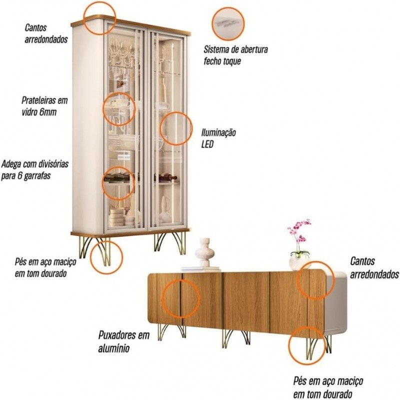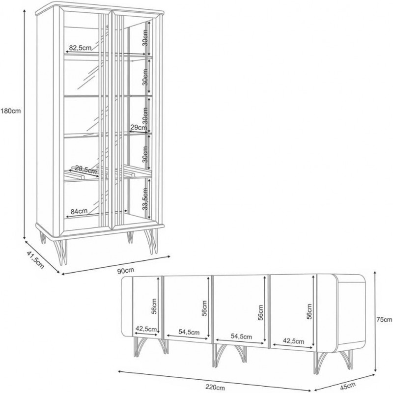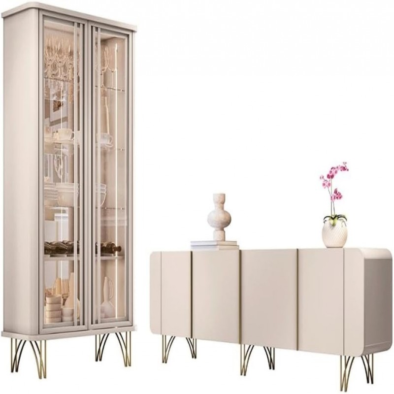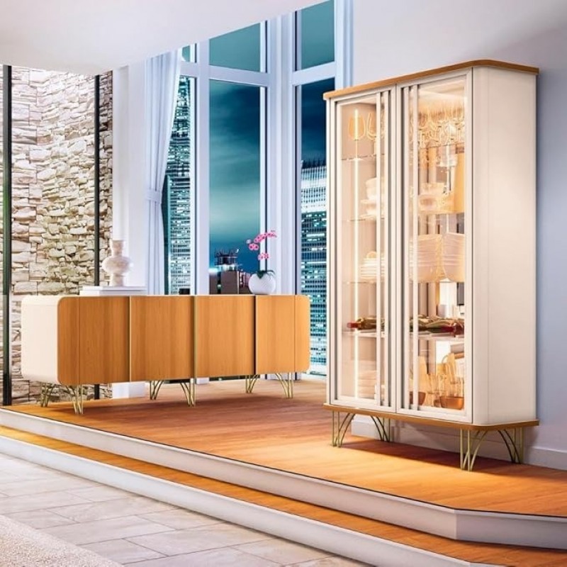 Transforme sua sala de estar em um espaço contemporâneo e elegante com nosso incrível Buffet Saluti e Cristaleira Evora.