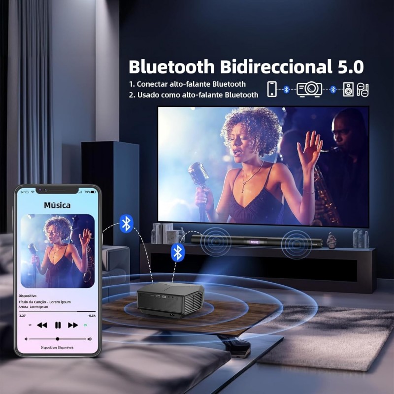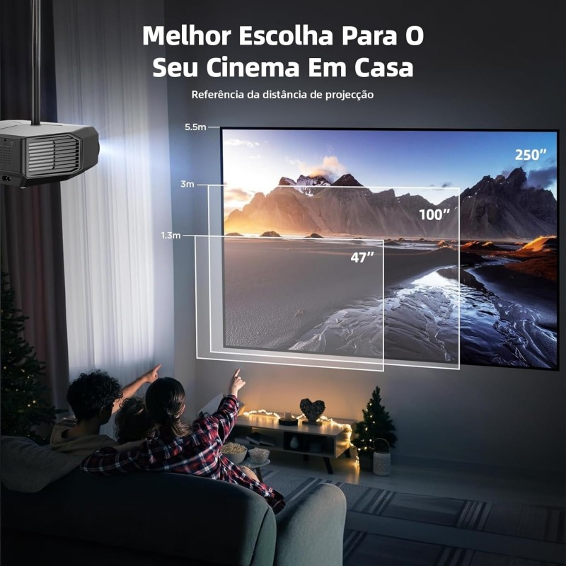 【Tecnologia WiFi 5G + 2.4G usada e alto-falantes HiFi integrados de 16 W】 Utilizamos a mais recente tecnologia WiFi 5G+2.4G neste progetor Bluetooth, com uma velocidade de transmissão pelo menos 30% mais rápida do que outros projetor portátil. Com este projetor smart sem fio, você pode aproveitar ao máximo a diversão proporcionada pela transmissão em velocidade ultra-alta. Os alto-falantes HiFi integrados de 16 W oferecem agudos e graves nítidos para proporcionar uma verdadeira experiência de teatro.