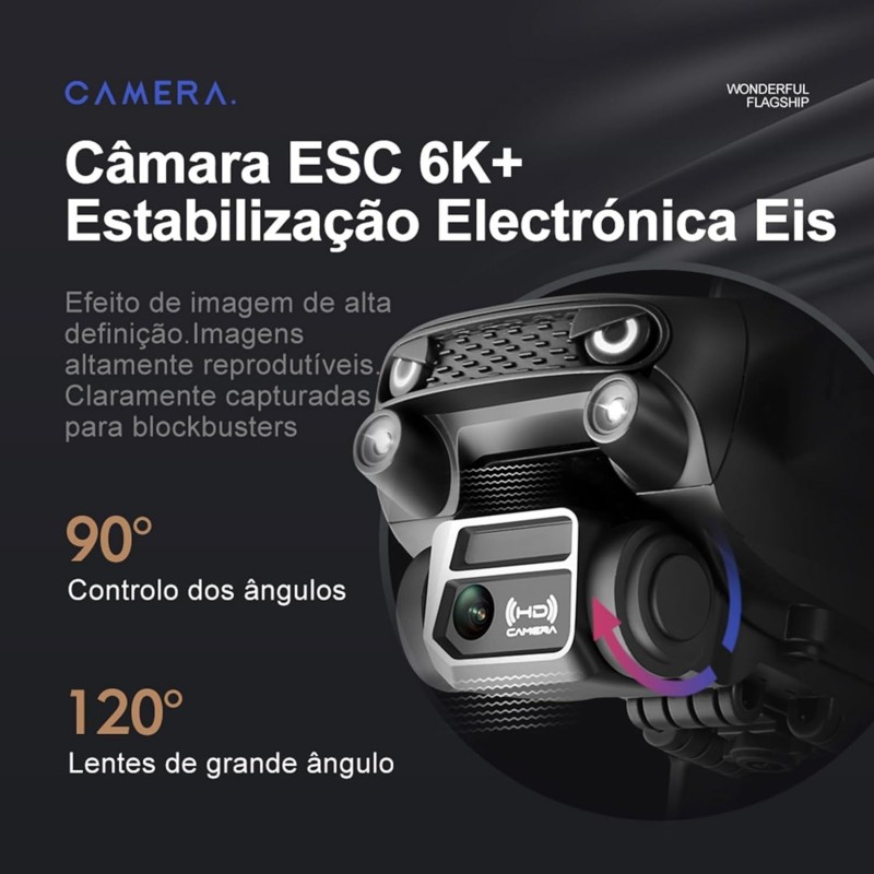 [Drone FPV Ajustável 4K e Controle Por APP] Drone com camera equipado com uma lente HD 4K de 90° ajustável manualmente, o drone tem uma visão mais ampla e impressionante. Ela ajuda a capturar todos os momentos de uma visão panorâmica e permite que você desfrute de fotos e vídeos em 6K HD. Ao conectar seu celular/tablet ao drone com camera RC, você pode apreciar a vista panorâmica em tempo real e compartilhá-la facilmente nas mídias sociais