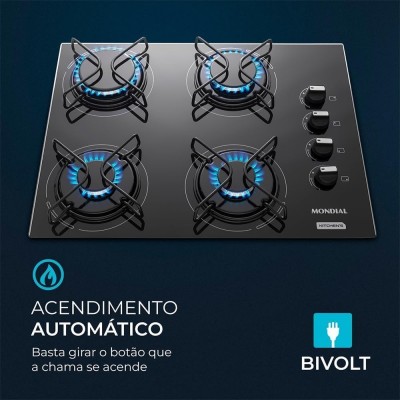CONVERSÃO GRATUITA DE GÁS: Os Cooktops Mondial vêm de fábrica ajustados para funcionar com gás liquefeito de petróleo (GLP). A Mondial realiza, gratuitamente, a conversão do gás GLP para GN, uma vez e dentro do prazo de 90 dias, a partir da data de compra. Para solicitar, acesse: atendimento.emondial.com.br/autorizadas e encontre a autorizada Mondial mais próxima da sua casa!
