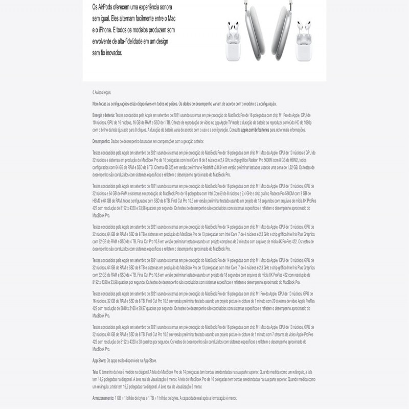 Apple notebook MacBook Pro (de 16 polegadas, Processador M1 Pro da Apple com CPU 10‑core e GPU 16‑core, 16 GB RAM, 512 GB SSD) - Prateado