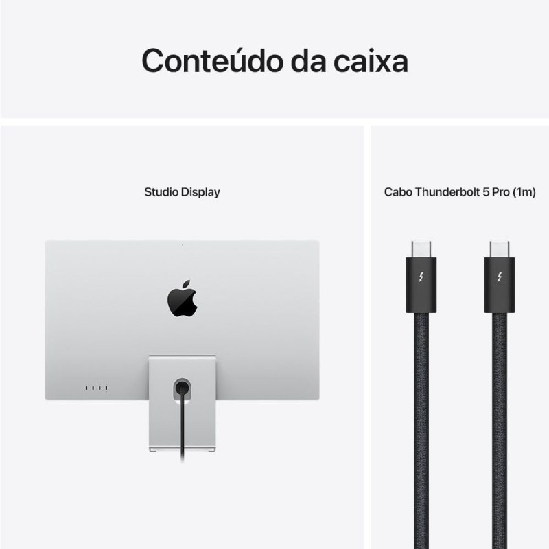 Uma envolvente tela Retina 5K de 27 polegadas, câmera Center Stage de 12 MP com Visualização da Mesa, microfones e alto-falantes avançados, além de portas Thunderbolt 5. O Studio Display é o parceiro ideal para o Mac.